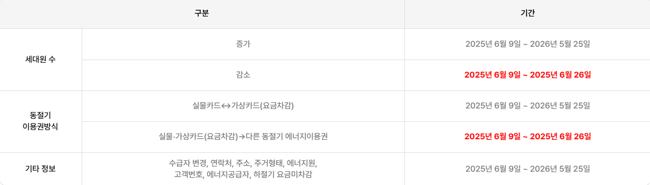 에너지바우처는 지정된 기간에만 사용할 수 있으며, 2025년 기준 사용기간은 다음과 같습니다.